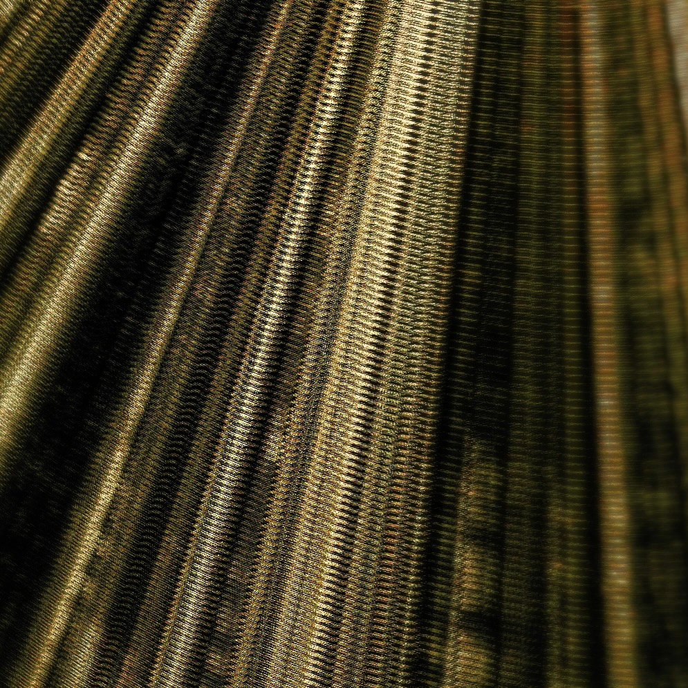 Peaks and valleys, representing high and low periods, are formed by the introduction of interpolated local average wind speed and rainfall records from December 2022. They take on the appearance of drapery curves or degraded corrugated iron sheeting, with larger and brighter periods indicating longer and more intense wind or rain periods.
