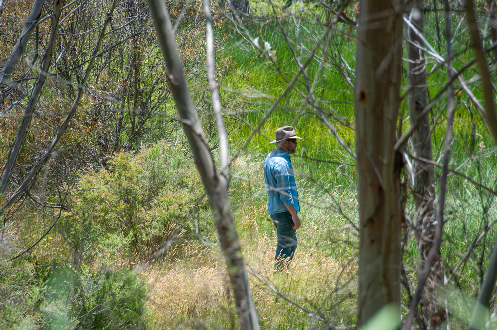 The Ecotone: Visualising Cross-talk of 'The Gully' began when I was invited by The Painted River Project in partnership with Gundungurra Traditional Owners, led by respected custodian David King, to join an on-site meeting at 'The Gully', Garguree. My work started in earnest after I was warmly welcomed by David on my first site visit. I was deeply moved by the narrative he shared, which intricately wove together the themes of cultural displacement, the reclamation of family and identity, and environmental regeneration—all centred around the significance of 'The Gully', Garguree. David's account of the history, including the challenges of forced housing, the subsequent demolition of those very homes and the site itself to make way for a racetrack, left an indelible impression on me. His role as a custodian, graciously welcoming me onto Country and generously sharing the site's cultural significance, evoked an overwhelming sense of respect and gratitude. As a visiting media artist and designer, I couldn't help but grapple with my own sense of impostership, but David made me feel welcome. Despite the adversities faced, the unwavering dedication of David's family to regeneration initiatives and community-building efforts instilled in me a resolute sense of hope for the future of the site and the need for enduring preservation of Aboriginal cultural heritage—Songlines recounted, reconnected, retraced, and continuing!